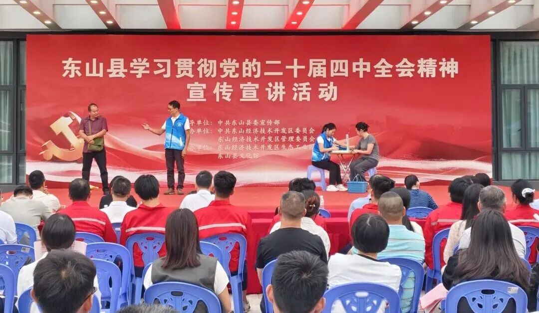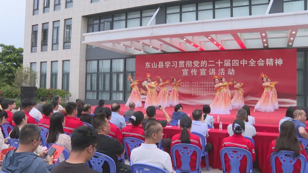 为学习好贯彻好党的二十届四中全会精神,10月31日下午,东山县举办学习贯彻党的二十届四中全会精神(进企业)首场宣传宣讲活动,采用“理论+文艺”等更接地气、更易理解、更暖人心的方式宣传全会精神,帮助企业员工听得懂、学得进、有共鸣,迅速掀起学习热潮,进一步凝聚起奋进新征程、建功新时代的磅礴力量。副县长、东山经济开发区管委会主任吴华安参加活动,县委宣传部、各镇分管领导、开发区领导班子成员以及各企业代表等110余人参加活动。
