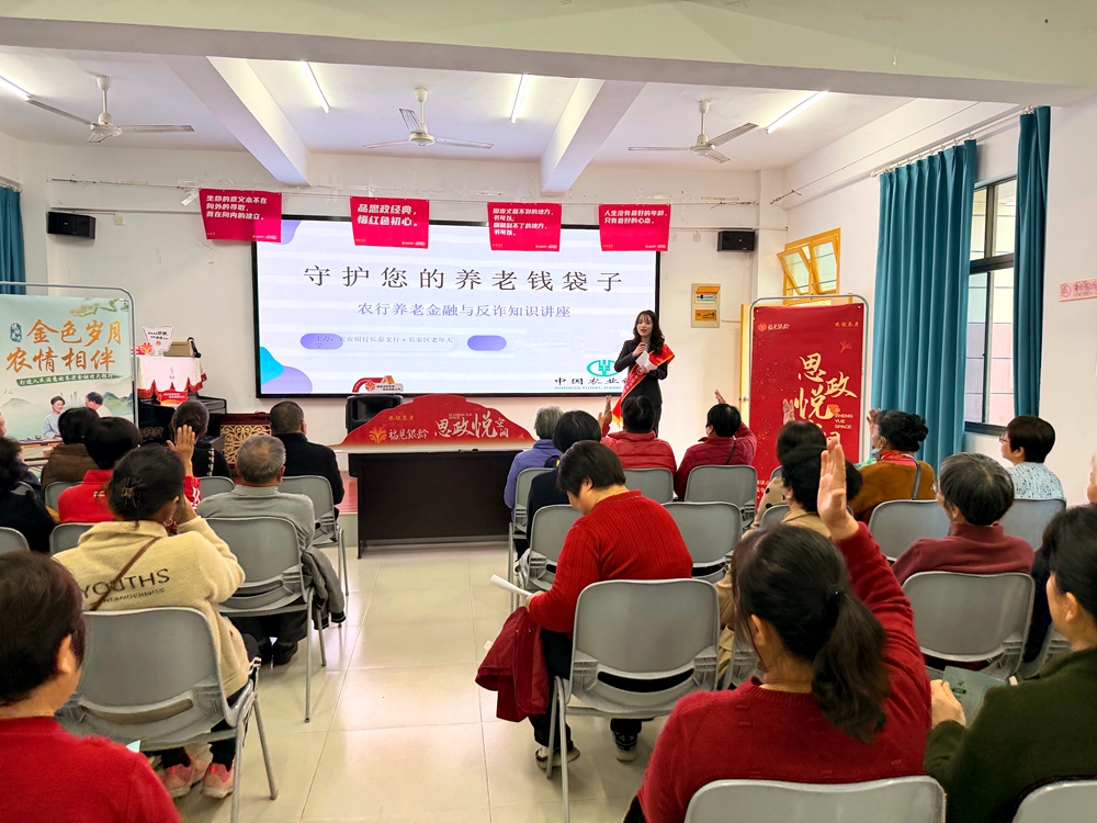 为深入践行金融工作的政治性与人民性,扎实推进养老金融服务落地见效,近日,农行漳州长泰支行依托全省老年大学“思政悦空间”建设契机,走进长泰区老年大学开展“暖心金融服务,托举幸福夕阳红”养老金融宣传活动,以实际行动为老年群体送上专属金融关怀。