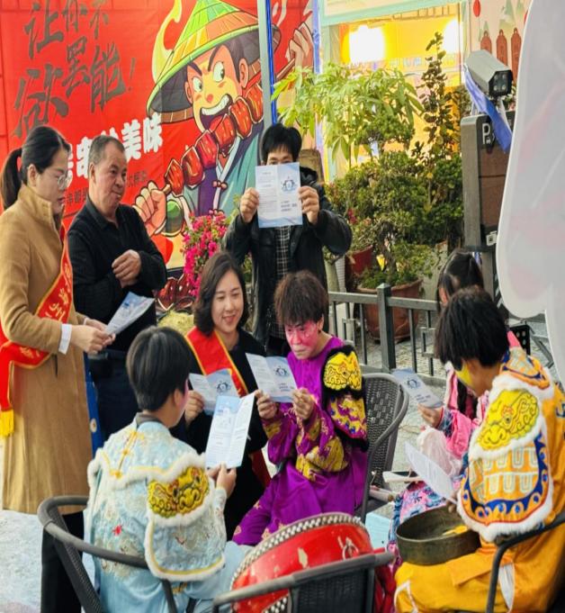 这场接地气的宣传不仅吸引了食客,更让非遗表演者驻足。演出间隙,表演演员们主动领取资料、咨询消保知识,在交流非遗传承心得的同时,探讨金融安全要点,传统文化与现代金融守护碰撞出独特火花。