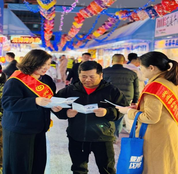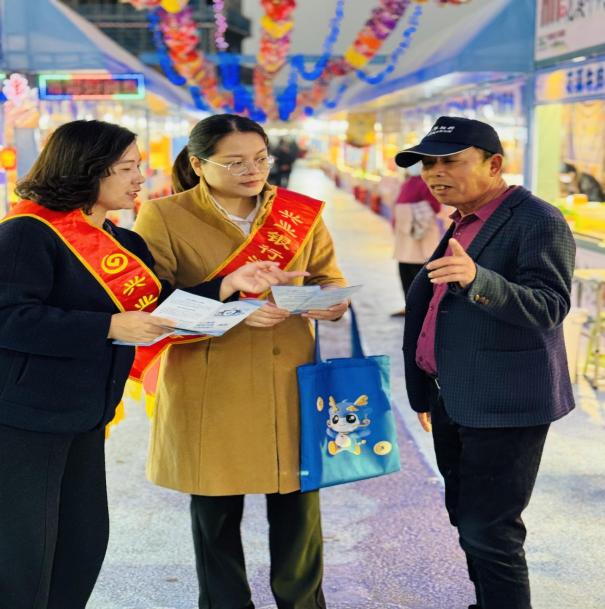 从白昼到夜幕降临,兴业银行工作人员的宣传热情丝毫不减。他们穿梭在摊位间持续开展“流动式”宣传,将金融守护精准送达夜间市集的每个角落。