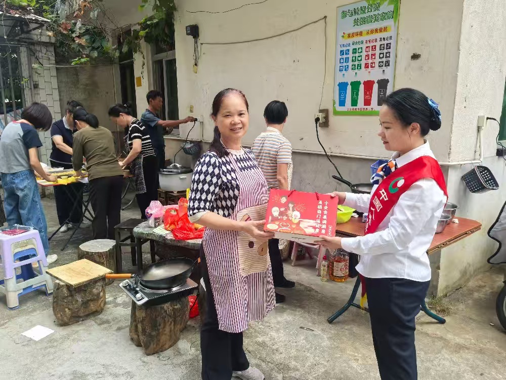 活动现场早早便飘起了阵阵香气。国寿寿险华安县支公司宣传人员提前备齐食材,在社区广场支起灶台,精心烹制打卤面、炸肉饼、炸五香等小吃。手擀面条筋道爽滑,卤汁熬得浓稠鲜香,刚出锅的炸肉饼和五香金黄酥脆、肉香四溢。宣传人员一边将热气腾腾的食物递到老人手中,一边耐心询问口味,“阿姨您慢用,不够再添”“叔叔小心烫”的叮嘱声此起彼伏。老人们围坐在一起,吃着热乎饭,拉着家常,脸上满是幸福的笑容。