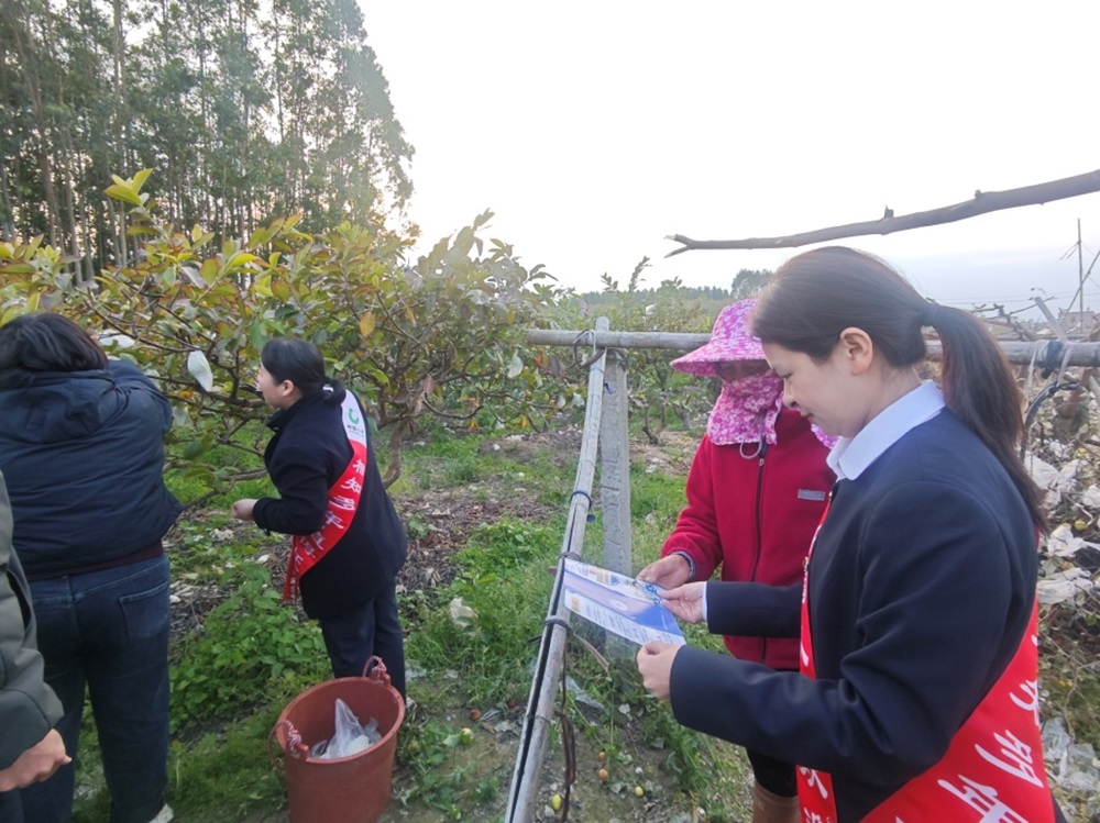 “阿婆,您平时去银行存钱,一定要认准正规渠道,别轻信高息理财的诱惑”“遇到陌生电话让您转账汇款,先给我们打个电话问问,千万别着急操作”……工作人员结合农村地区常见的金融风险案例,重点讲解了防范电信诈骗、识别非法集资、理性选择保险产品等知识,用身边事教育身边人,让消保知识变得生动易懂。同时,针对果农在生产经营中可能遇到的资金周转、风险保障等需求,工作人员还耐心介绍了适合农村群众的保险产品和金融服务,为农户搭建起坚实的金融防护网。