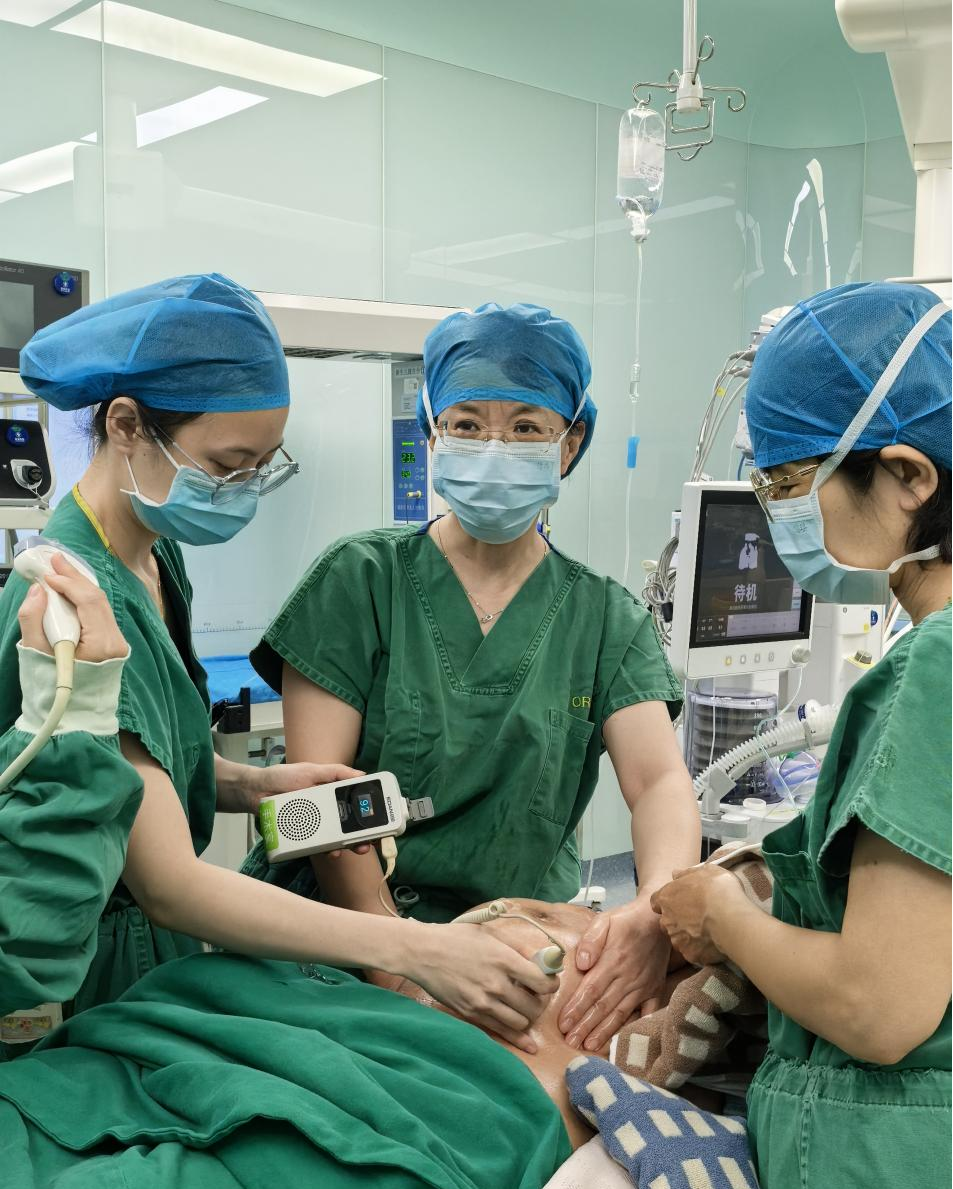 3月6日下午,在麻醉及彩超双重监护的严密保障下,手术正式开始。术前超声清晰提示胎儿先露为臀位,一切准备就绪后,张宇靖主任凭借丰富的临床经验和精准的操作技巧,臀位外倒转术一次成功,只用不到一分钟!整个操作行云流水、精准娴熟。