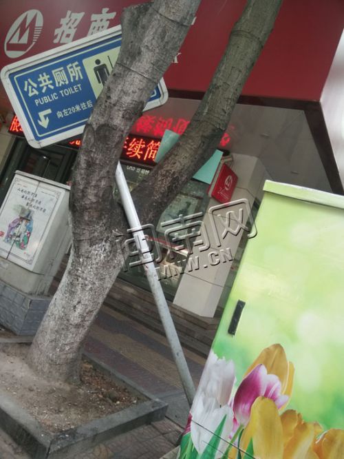 市民王女士:连续三天,我路过漳州延安南路和瑞京路交叉口时,看到一个公厕指示牌倾斜,靠在一棵绿化树上。虽然上面注明向左20米有公共厕所,可指示牌倒成这样,实在看不懂指向哪里。