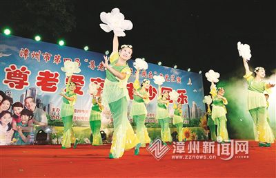 8日晚,在2016年“重阳节”来临之际,漳州市第四届尊老爱亲、老少同乐文艺汇演在市区中山公园举行(题图)。该汇演由市关工委、芗城区关工委等单位联合举办。来自芗城区老年大学、华港实验幼儿园等200余名老少“演员们”同台献艺。为弘扬中华民族尊老爱幼的传统美德,我市各级关工委开展“尊老爱亲月”活动,发动青年学生志愿者到福利院、老人活动中心、敬老院等帮助老人打扫卫生,整理房间,表演文艺节目,给老人们送去温馨的节日祝福。(记者 林忠 通讯员 林武昌 叶慧平 文/图)