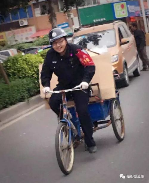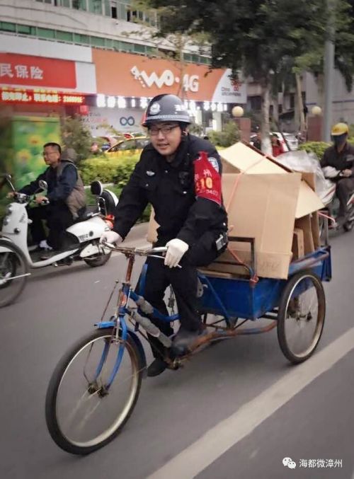 一位带着漳州110袖标的队员,