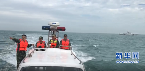 图为福建漳州边防官兵正在事发海域搜救。