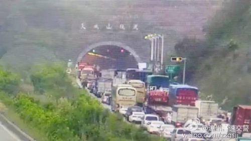 该路段处于连续14公里长下坡下游,坡长、坡陡、路弯,路况复杂,事故多发。目前该路段实行物理隔离单车道限速通行(大货车限速40公里,客车限速80公里/小时),通行速度较为缓慢。