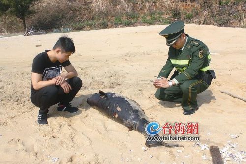 台海网1月9日讯(海峡导报记者 陈龙山 通讯员 刘松 文/图)7日傍晚,泉州市惠安县莲城边防派出所官兵接到辖区群众报警称,在净峰镇杜厝村海边,发现一只搁浅“海豚”。