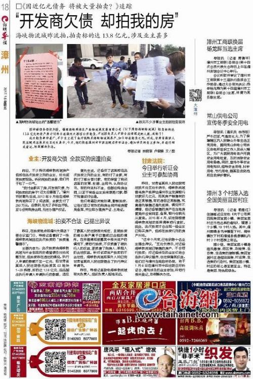 因涉嫌债务债权纠纷,此前福建海峡两岸农产品物流城发展有限公司(以下简称海峡物流城)部分房产1月初被拍卖但流拍,其中涉及不少业主花钱购买的店面。昨日,此事又有了新进展。