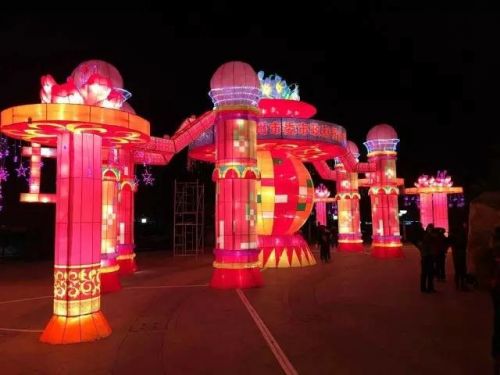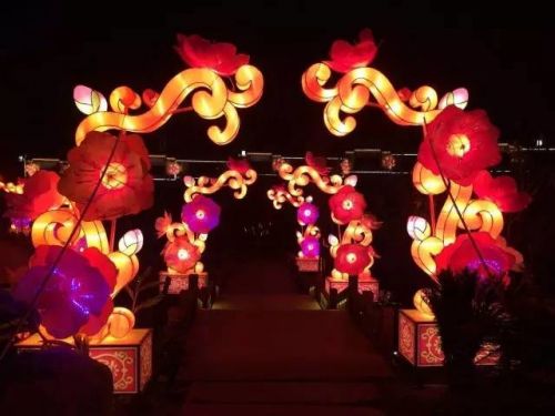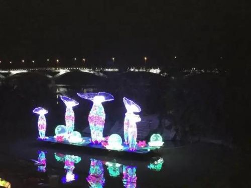 1月22晚花灯全部安装完毕,实行试亮灯效果: