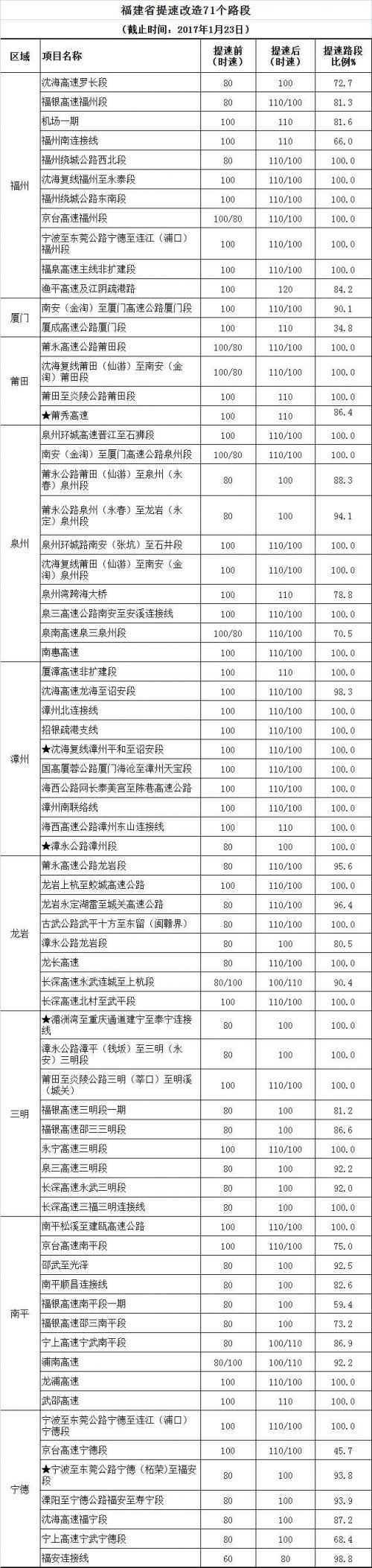 ­  (注:带★号的路段,需到春运结束后提速。)
