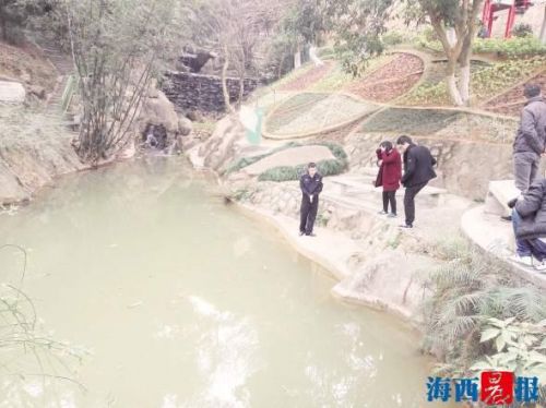 据落水男孩介绍,2月9日傍晚,他和其他两个小伙伴在龙海市石码镇紫云公园望江亭旁的水塘边玩耍,他沿着邻水斜护坡行走,想爬到旁边的石龟背上玩,不慎失足落入水中。
