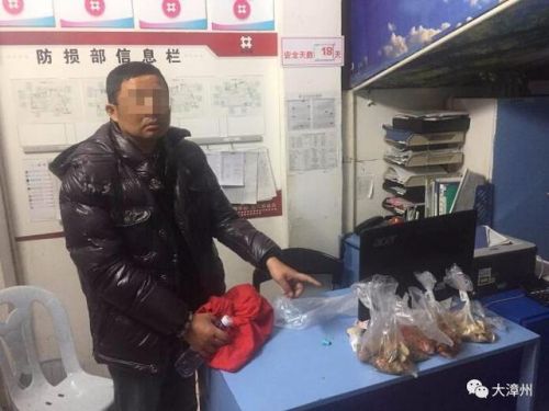 2月10日上午10时许,漳州市区胜利西路某超市员工小兰(化名)在巡视视频监控时,发现一名中年男子用包装袋装好一些鱼虾干果称完重后,躲躲藏藏地撕掉了那些价钱的标签后,把东西塞进了随身携带的一个袋子里。男子可疑的举动引起了小兰的注意,一直紧跟不放,果然男子经过收银台不买单说直接走了出来。