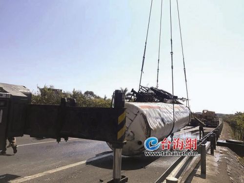 驾驶员称,事故是前轮爆胎引起的,具体原因交警还在进一步调查中。(记者 林晓琪 通讯员 林金山 何汉荣 文/图)
