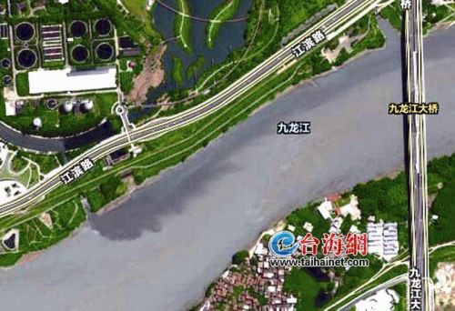 根据市民提供的卫星图可看出,有黑色的水从原漳州污水处理厂对面的河道流入九龙江,并逐渐蔓延到九龙江大桥附近。但是导报记者了解到,这张卫星图的拍摄时间,是此前一段时间了。