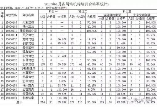 近日,漳州市公安局交警支队发布了漳州各驾校的培训质量统计,