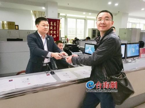 ▲昨日,在漳州市行政服务中心,首本网约车驾驶员证颁发给余先生