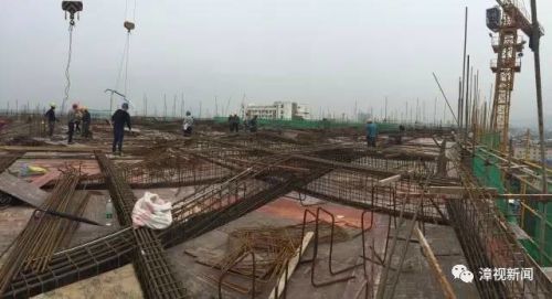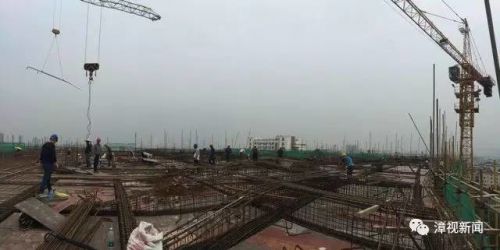 自去年11月开工以来,市科技馆、图书馆项目屋面板钢筋已经安装过半。施工方告诉漳VV,为确保工程进度,工地上每天有四百多名工人加班加点全力推进项目建设。