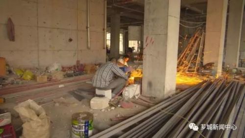 连日来,在芗城区金峰花园南区安置房建设工地,100多工人分布在各个工作岗位,抓紧最后一栋高层2号楼的内外装修作业。
