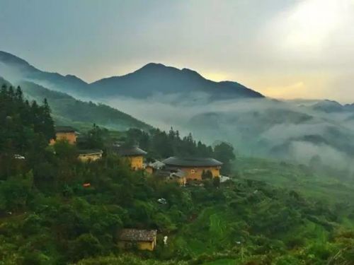 南靖冬无严寒,夏无酷暑,年平均温度21℃,森林覆盖率为70.72%,绿化程度达96.5%,素有“树海”、“竹洋”之称,动植物资源十分丰富,青山环抱、溪流淙淙、鸟语花香、云遮雾绕。
