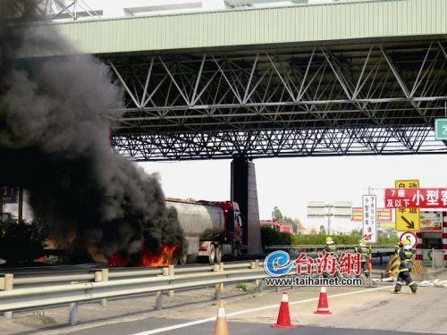 昨日14时50分许,沈海高速漳州东收费站处(龙岩往厦门方向),一油罐车车胎自燃,情况十分紧急。