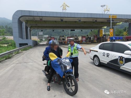 8月2日12时,漳州高速交警支队二大队驻和溪中队民警接支队指挥中心称在厦蓉高速主线建安隧道B道(下行),有摩托车上高速。民警立即上路拦截,并在厦蓉高速B道斗米一号隧道出口前成功将该摩托车拦截。