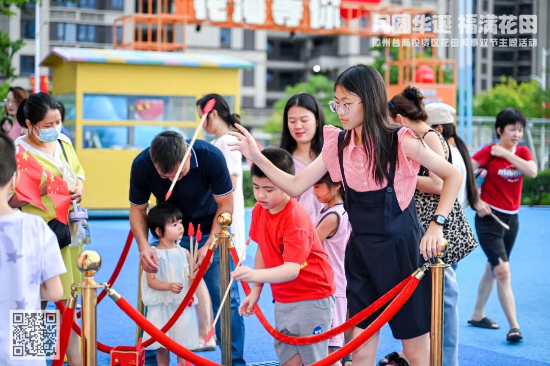 位于台商区西部的九龙沙洲景区同样热闹非凡。巨型红心打卡、升旗仪式等,燃起游客满满爱国情!《大国护照》挑战,点亮中国、红歌接唱、挑战国球、航母style……一波波“打卡”的游客热情高涨,争相留住最美瞬间。