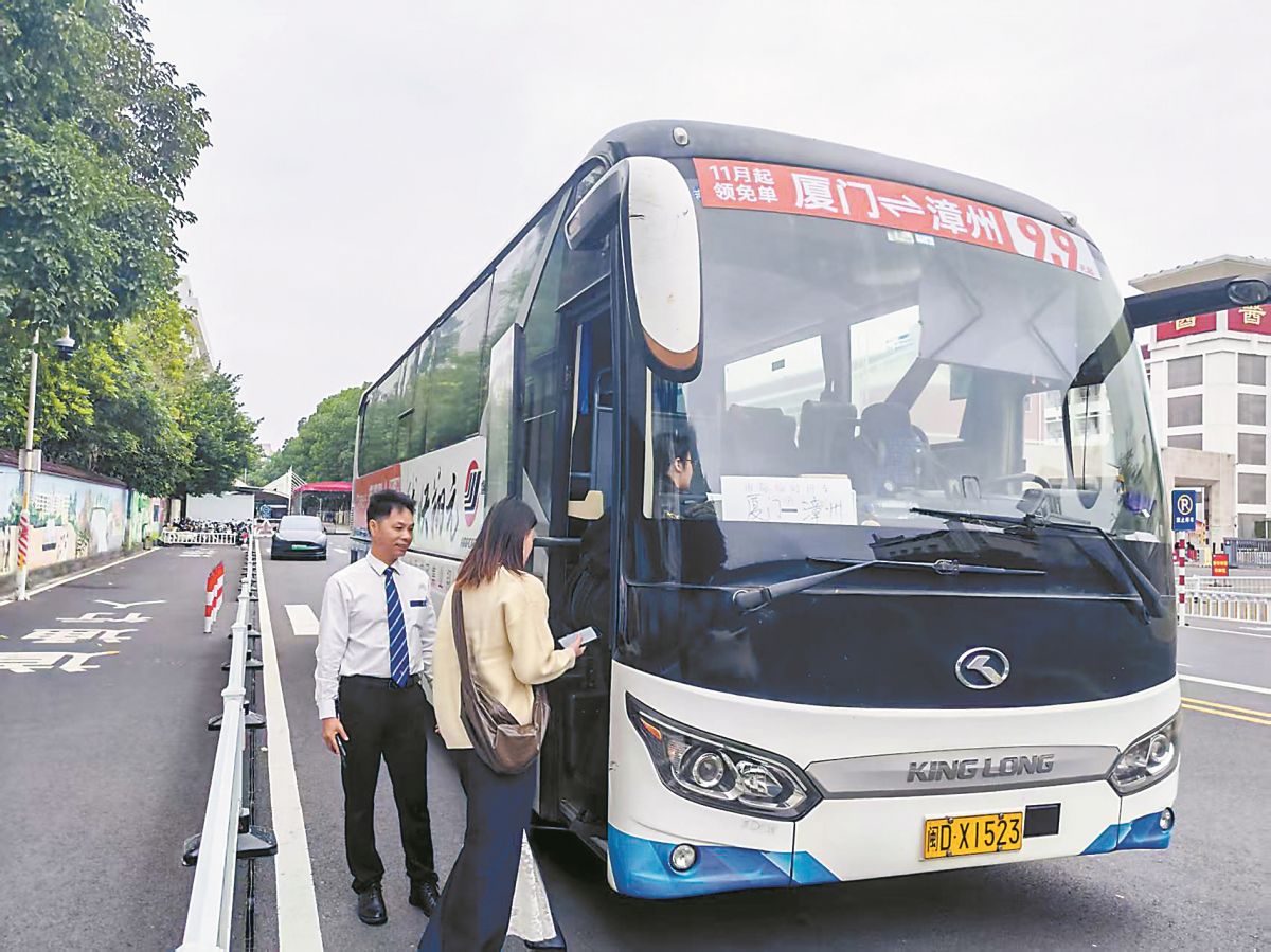 “这条专线票价实惠,站点覆盖广,前往厦门更便捷,下午返程票我都买好了!”11月3日上午10时许,漳州市民黄红在漳州市卫生职业学院南门,就近乘坐厦漳便民专线前往厦门访友。