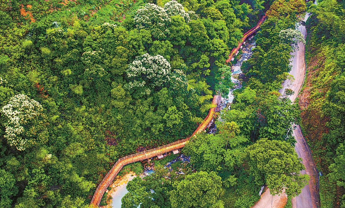 沿双芦溪新建的3.2公里亲水栈道漫步,溪水清澈,风光如画。摄影爱好者迅速支起三脚架,捕捉白鹇掠过水面的瞬间。